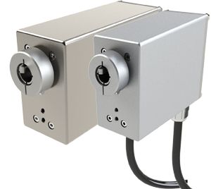 Die verschiedenen Linearachsen lassen sich einfach mit den Stellantrieben von Lenord + Bauer automatisieren. Letztere kommen wahlweise in kurzer oder langer Bauform mit Aluminium- oder Edelstahlgehäuse zum Einsatz. Dabei liefern die Geräte je nach Bauform (lang oder kurz) Nenndrehmomente von 1,4 Nm bis 15 Nm. Zur Montage der PowerDRIVE-Antriebe an die entsprechenden Linearachsen konstruierte das Unternehmen jeweils eine passende Drehmomentstütze. Der Stellantrieb wird mit montierter Drehmomentstütze einfach auf die Achse gesetzt und in seine Position geschoben. Ein Klemmring fixiert den Antrieb dabei fest auf dem Wellenzapfen der Linearachse. Neben der kraftschlüssigen Wellenverbindung wird mit einer flexiblen Motoraufnahme an der Drehmomentstütze zugleich das erforderliche Loslager abgebildet.