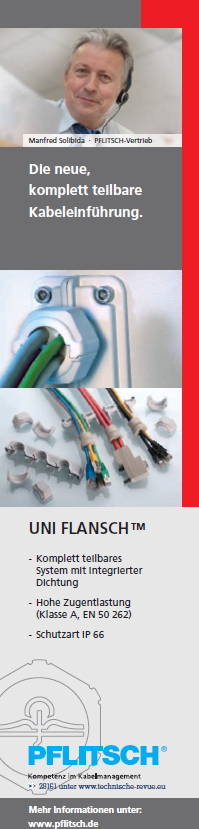 Mit der neue UNI Dicht TRI kombiniert PFLITSCH die hochwertige EMV-Kontaktierung per TRI-Feder – bekannt aus der blueglobe-Baureihe – mit der Kompaktheit und Individualität des UNI Dicht-Systembaukastens. Auch diese Lösung überzeugt mit ihrer dauerhaften, großflächigen und niederohmigen 360°-Kontaktierung zum Kabelschirm dank der patentierten Triangelfeder. Das ergibt höchste Schirmdämpfungswerte bis in den GHz-Bereich. Ein weiterer Pluspunkt ist die sehr hohe Stromtragfähigkeit zur zuverlässigen Ableitung unerwünscht hoher Schirmströme.