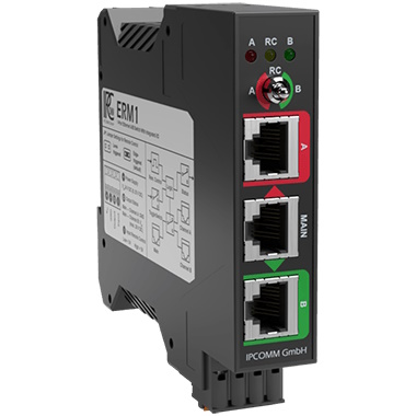 ERM1 eignet sich zur Umsetzung von Redundanzkonzepten, um die Betriebs- und Ausfallsicherheit in kritischen Anlagen zu gewährleisten. Hierbei werden Netzwerkgeräte parallel betrieben, um im Fall einer Störung auf das Partnergerät umzuschalten. Durch ERM1 können selbst Geräte, die dies nicht unterstützen, redundant betrieben werden, indem sie identisch konfiguriert werden. Da stets nur eine Leitung aktiv ist, sind Adresskonflikte im Netzwerk ausgeschlossen. Zu den weiteren Anwendungsfällen des Netzwerkumschalters zählen beispielsweise die redundante Anbindung von Internet-Service Providern (ISPs) oder die Möglichkeit zur Umschaltung auf Backup-Netze. Wird der Netzwerkumschalter hingegen zum Zu- und Abschalten von Netzwerkverbindungen eingesetzt, verbleibt einer der beiden Ports A/B unbelegt. Auf diese Weise kann ERM1 zur physikalischen Notabschaltung von Netzwerken oder auch zur Freischaltung von Fernwartungszugängen zu isolierten Systemen verwendet werden. Der Netzwerkumschalter ERM1 ist für den Einsatz im erweiterten Temperaturbereich von -40° C bis 85° C geeignet und erfüllt die besonderen Anforderungen der Norm IEC 61850-3 an die elektromagnetische Verträglichkeit für die Automatisierung in Umspannwerken.