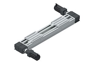 In vielen Branchen steigt der Bedarf an kompakten Handlinglösungen, die große Nutzlasten mit hoher Dynamik bewegen. Mit der neuen Doppelriemenachse aus der der Compactmodul-Baureihe CKR in Baugröße 280 bietet Bosch Rexroth dafür eine bauraumoptimierte Schwerlastachse mit zwei Nutzlasten bis 385 kg und Antriebsmomenten bis 250 Nm. Die beiden Tischteile der Doppelriemenachse können unabhängig voneinander im stabilen Aluminium-Hauptkörper des Compactmoduls bewegt werden. Durch die beiden integrierten Antriebsstränge lassen sich nun vielfältige Aufgaben mit nur einer statt bisher zwei Linearachsen lösen. Das spart Zeit, Kosten und Bauraum.